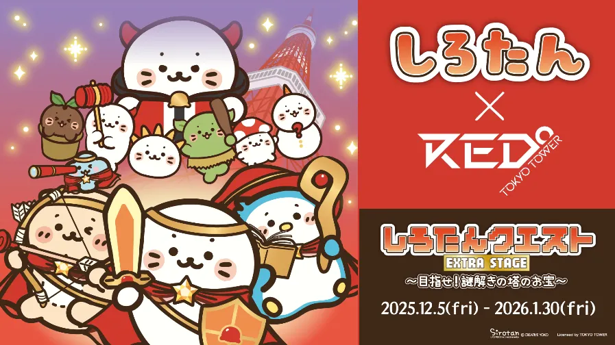 新年のスタートを彩る「厄も、アソベ!RED°の遊び初め2026」、大人気キャラクター「しろたん」とのコラボイベント、ボリュームメニュー「テラ盛りオムライス」に大食いタレントが挑戦!さらに、子ども向けドローン体験ワークショップやスマホケース自販機の新シリーズ対応など、RED° TOKYO TOWERではお正月も楽しみが盛りだくさん! ご家族やお友達と一緒に、ワクワクの一年をRED° TOKYO TOWERでスタートさせましょう♪