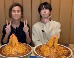 販売開始から大人気のボリュームメニュー「テラ盛りオムライス」に、有名大食いタレントの「Draco」さんと「カワザイル」さんが挑戦!