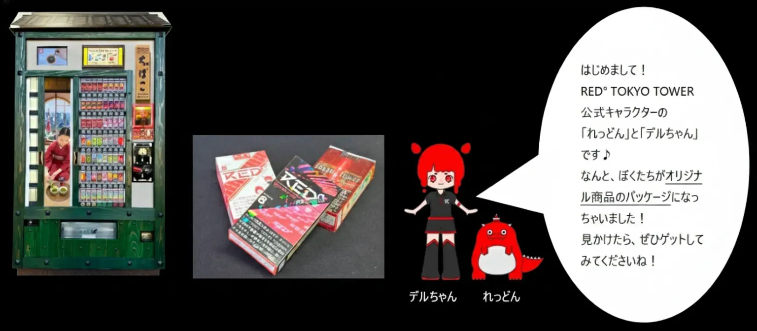 【RED° TOKYO TOWER3階】2026年2月11日(水)より、タバコ風の見た目が特徴の、粉末スティック茶商品『ちゃばこ』自動販売機を導入します! 設置を記念して、RED° TOKYO TOWERおよび東京タワーのオリジナルパッケージも販売決定!